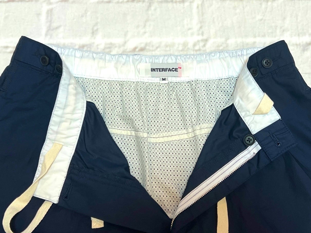 ブランドでは久々のナイロンパンツになります。膝周りを立体裁断で、動き易くなっています。裏地にメッシュ地を使用。同じ生地でセットアップでも対応のジャケットも作っています。