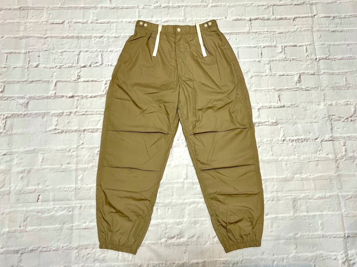 ブランドでは久々のナイロンパンツになります。膝周りを立体裁断で、動き易くなっています。裏地にメッシュ地を使用。同じ生地でセットアップでも対応のジャケットも作っています。