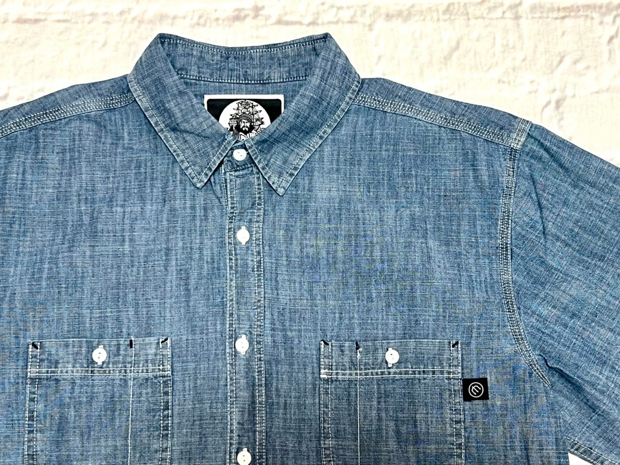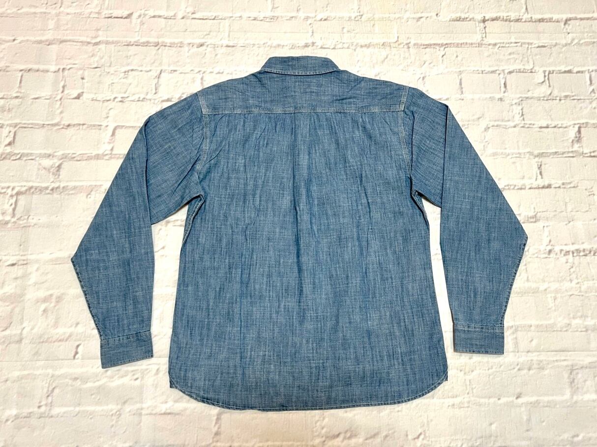 3本針のステッチや裾脇のマチなど、ビンテージライクな使用のシャンブレーシャツになります。